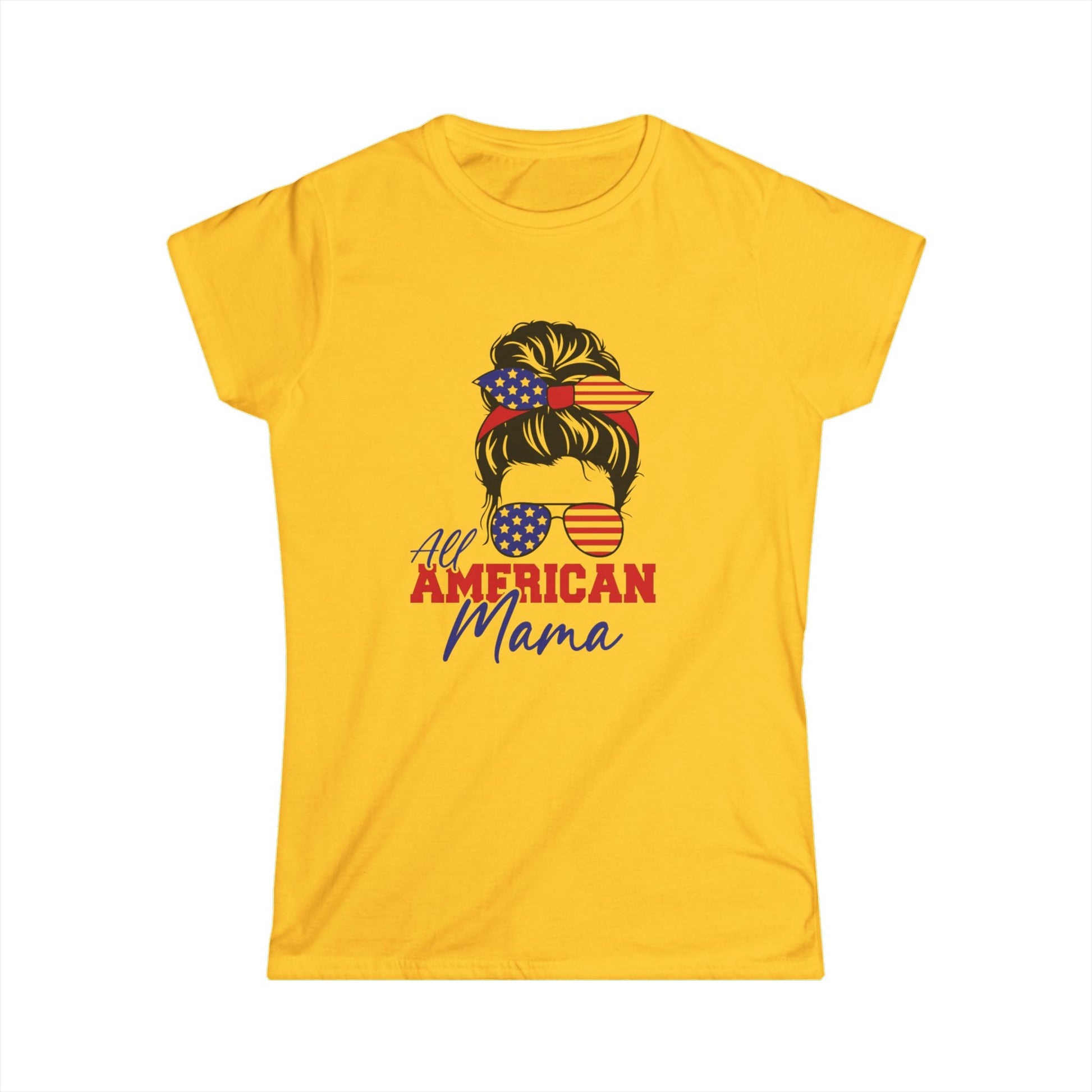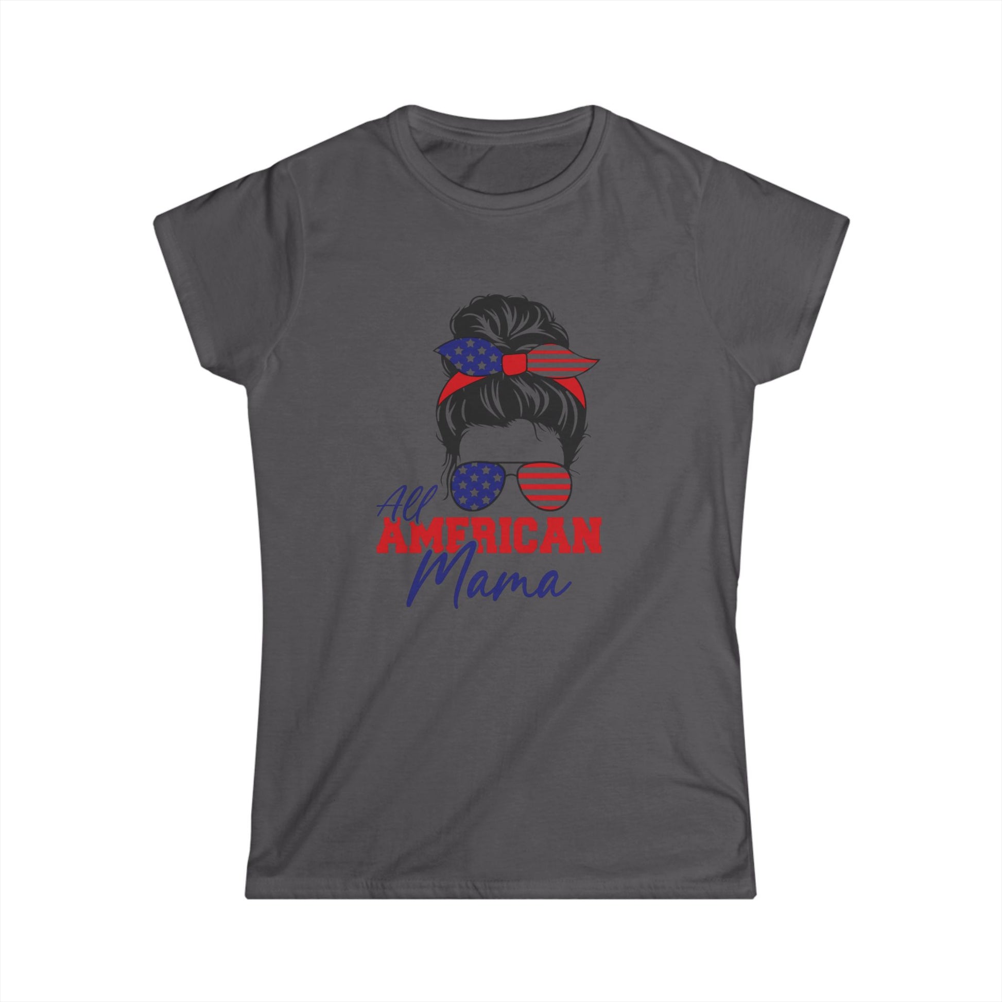 All American Mama Women's Softstyle Tee | Patriotic T-Shirt, Independence Day Apparel, Gifts for Moms, Summer Shirt, USA Pride Tee