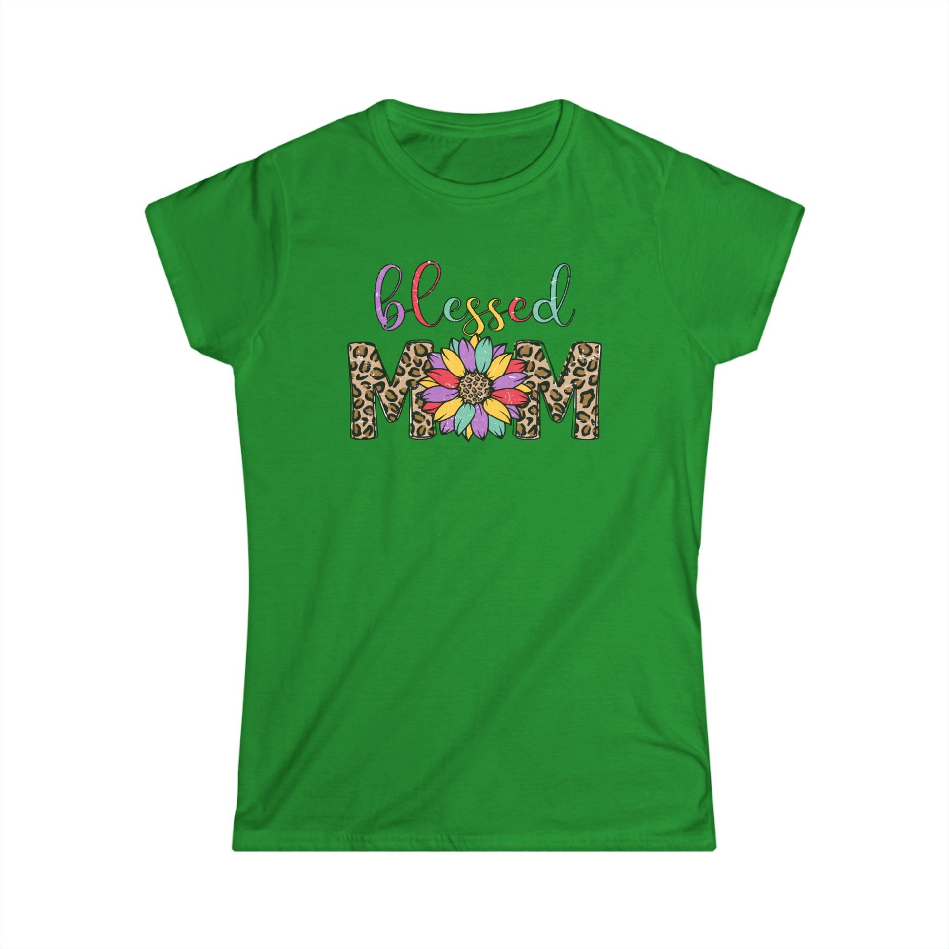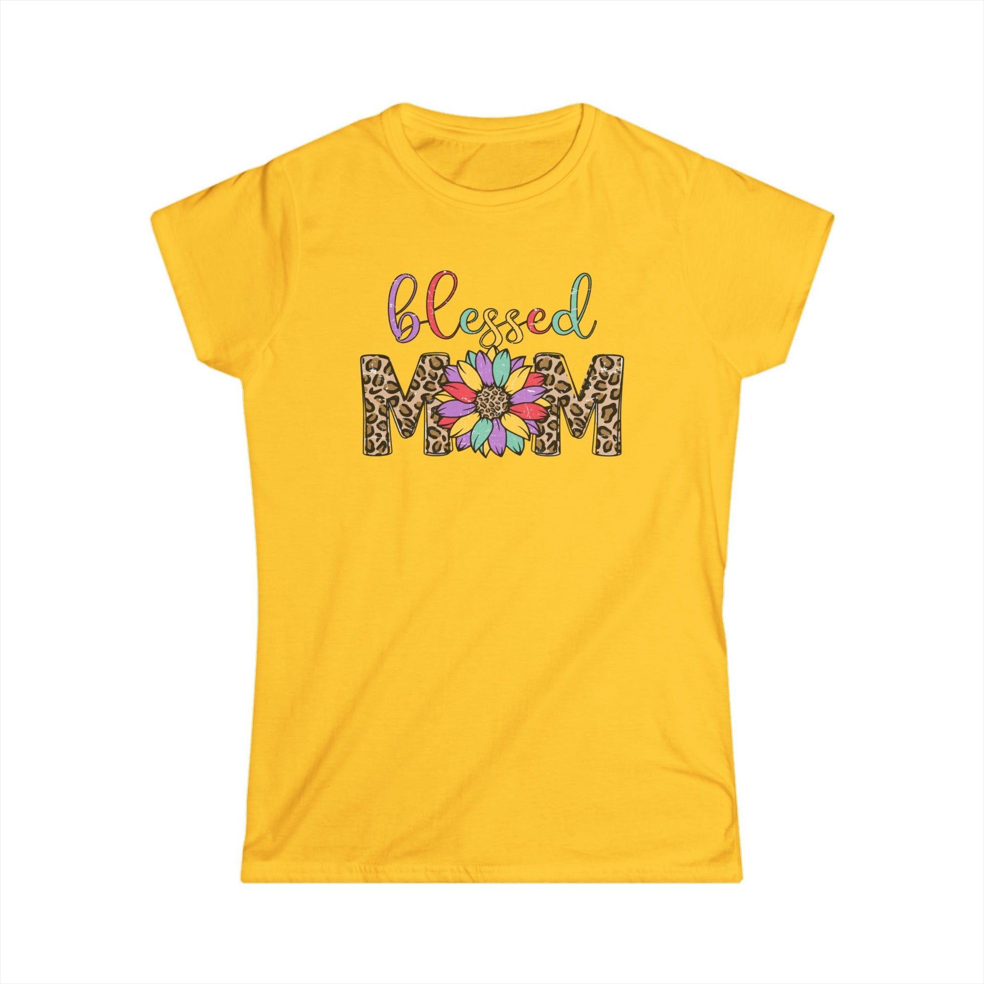 Blessed Mom Women's Softstyle Tee - Floral & Leopard Print Design