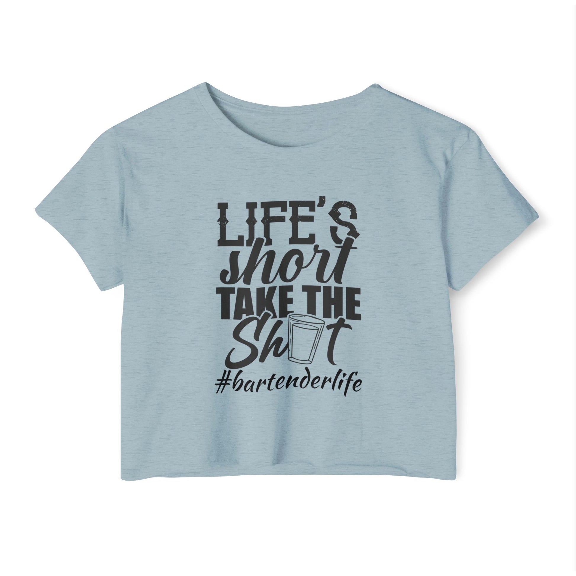 Fun & Playful Festival Crop Top for Women, Bar Outfit, Gift for Bartenders, Summer Music Fest Wear, Life's Short Take the Shot Tee