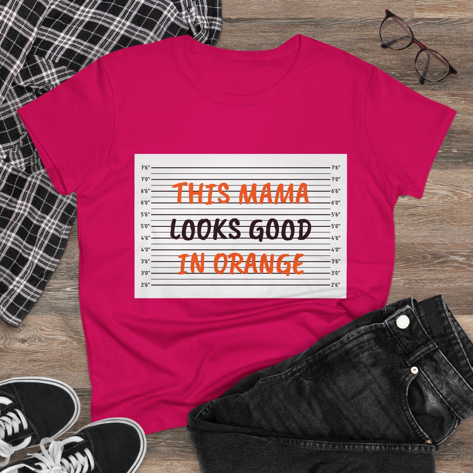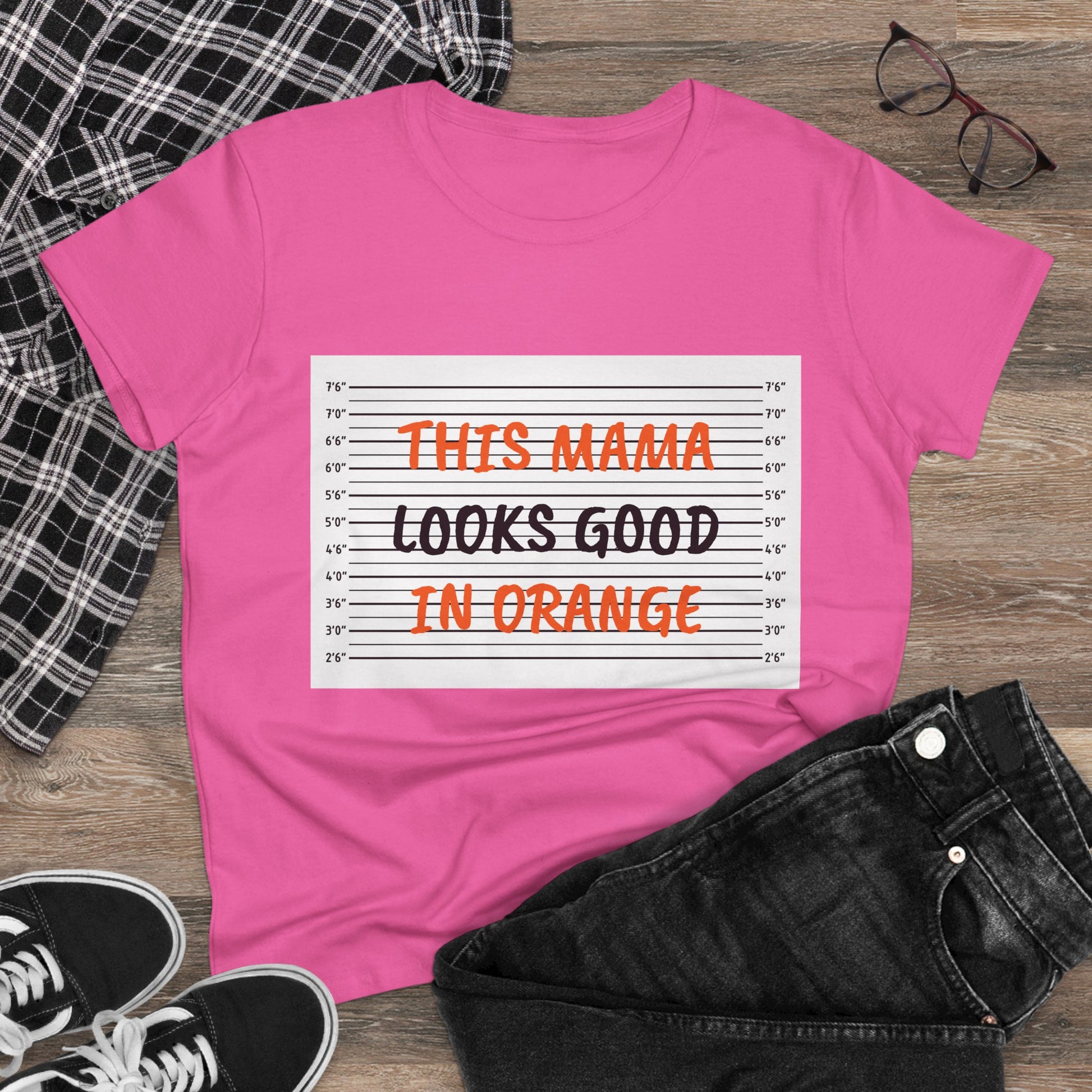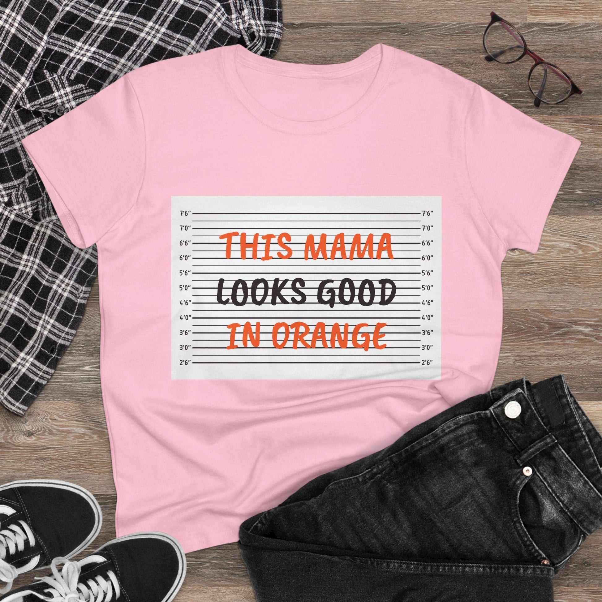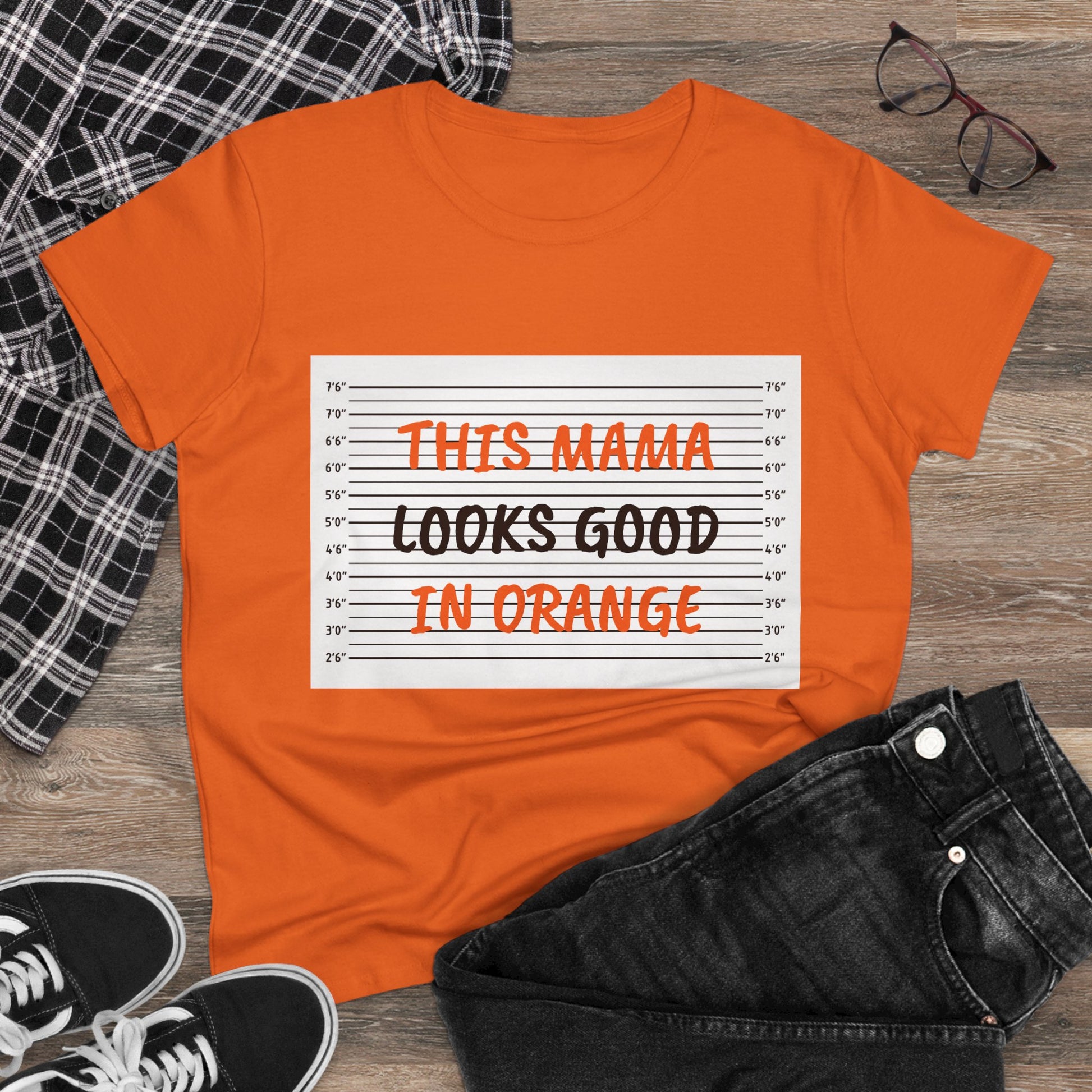 Fun Women's Midweight Cotton Tee - 'This Mama Looks Good in Orange'