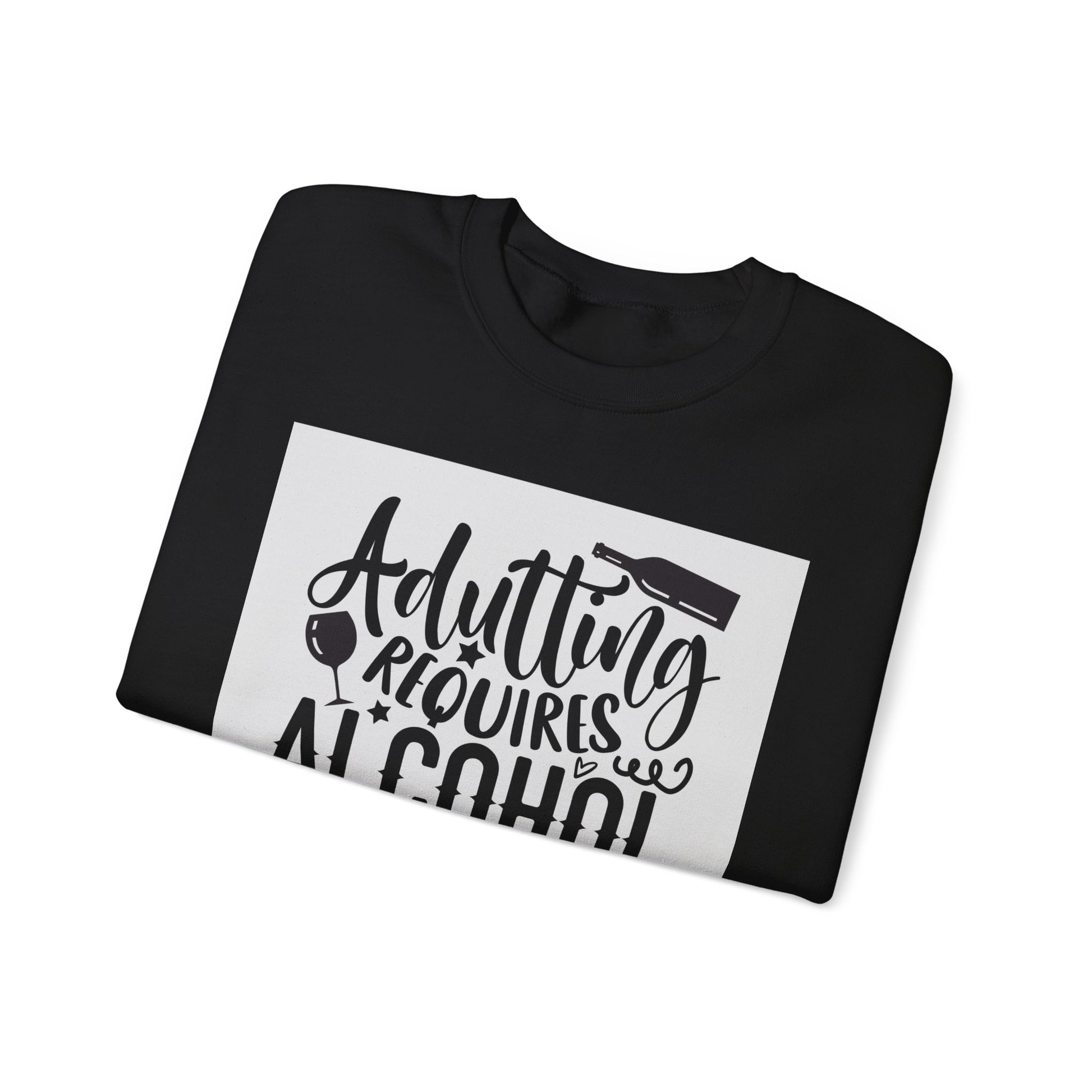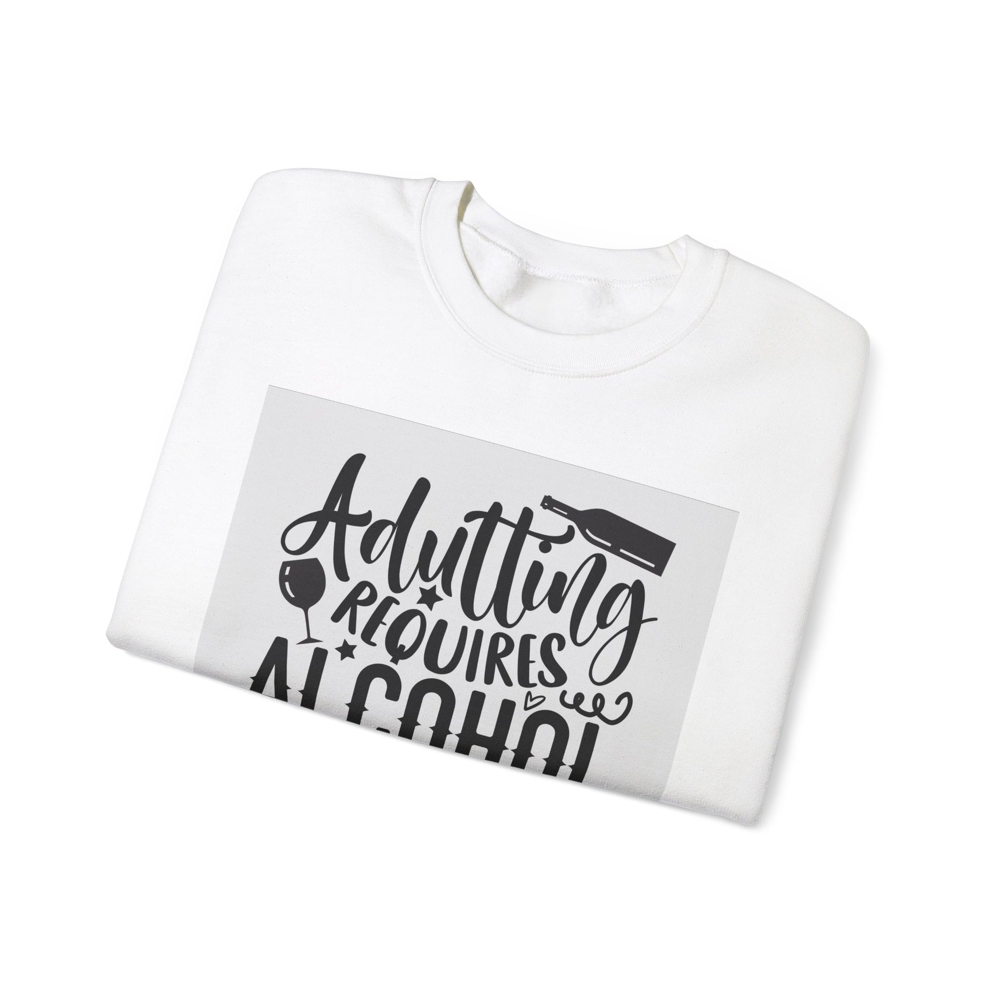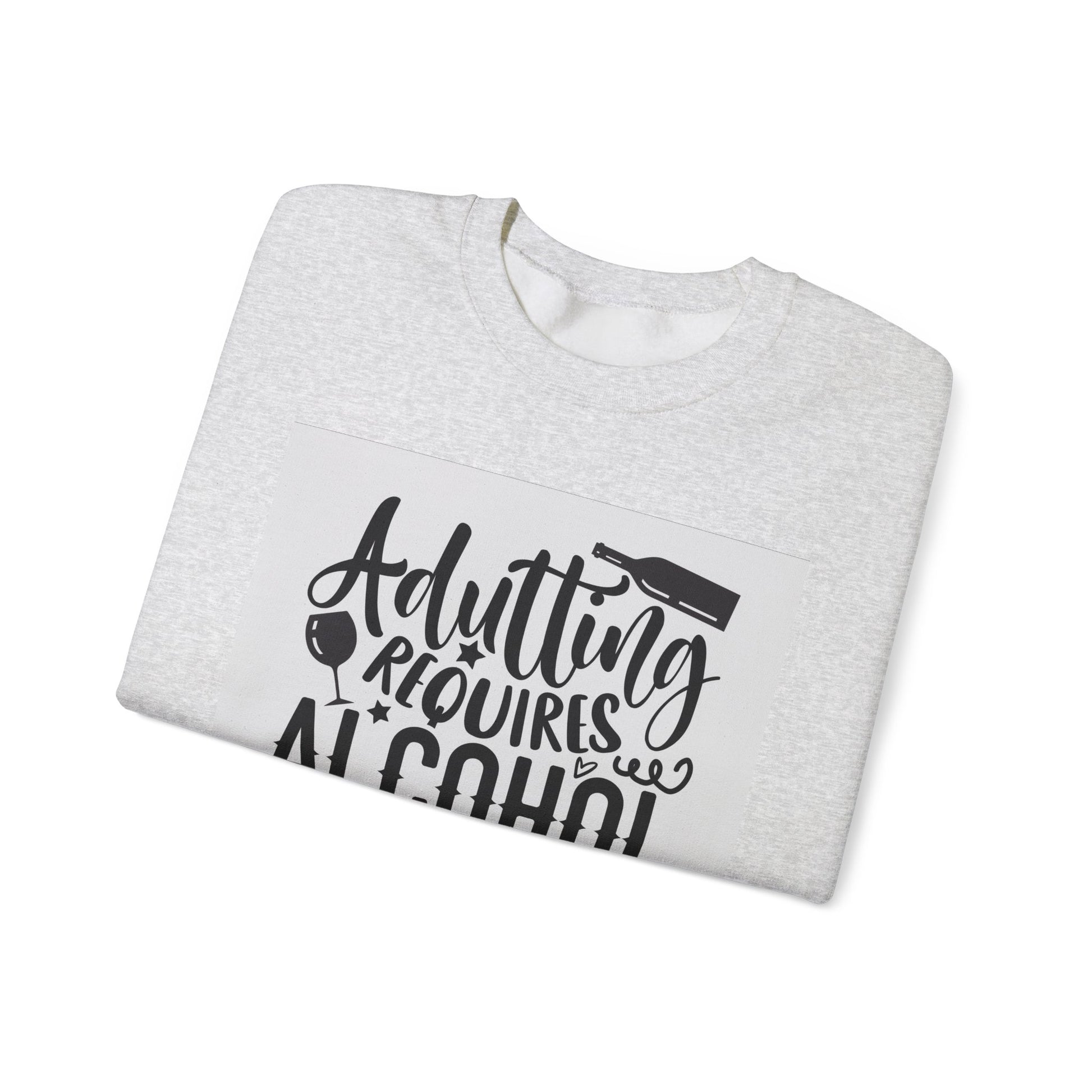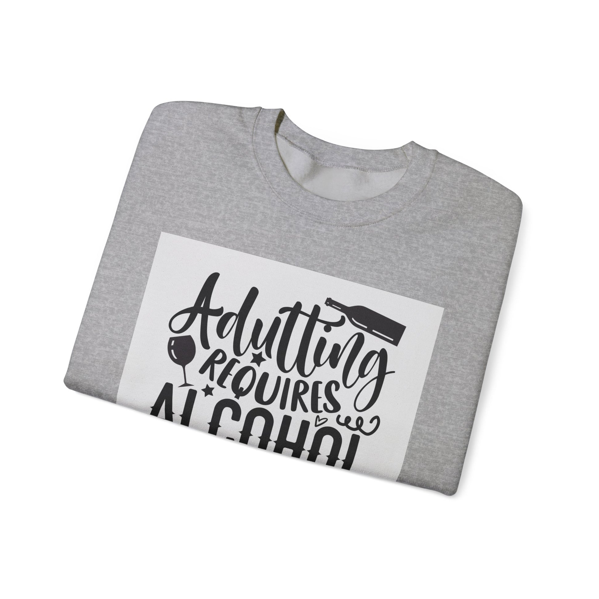 Funny Adulting Requires Alcohol Sweatshirt | Unisex Heavy Blend™ Crewneck for Parties & Casual Wear