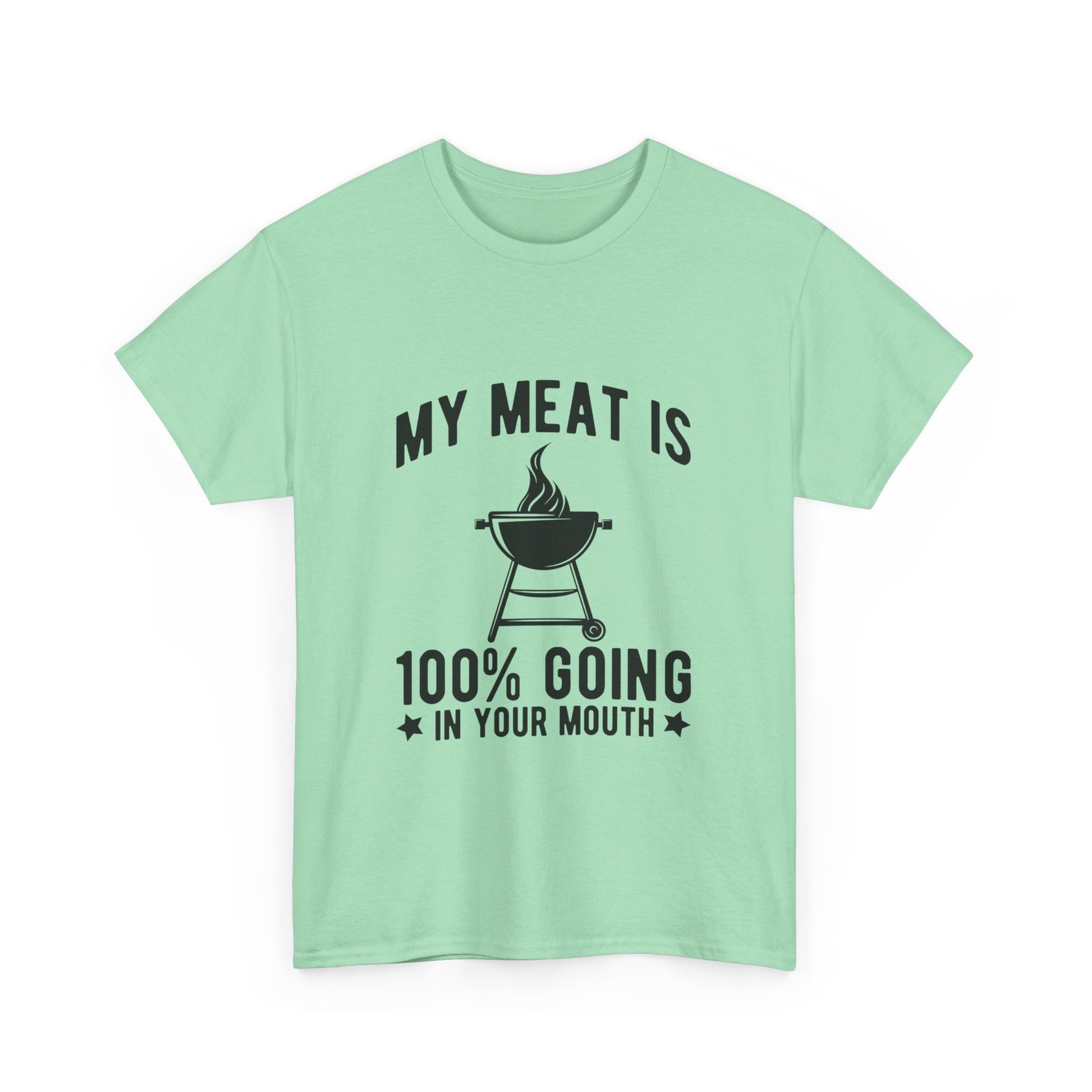 Funny BBQ Lover Unisex Heavy Cotton Tee - "My Meat Is 100% Going In Your Mouth"