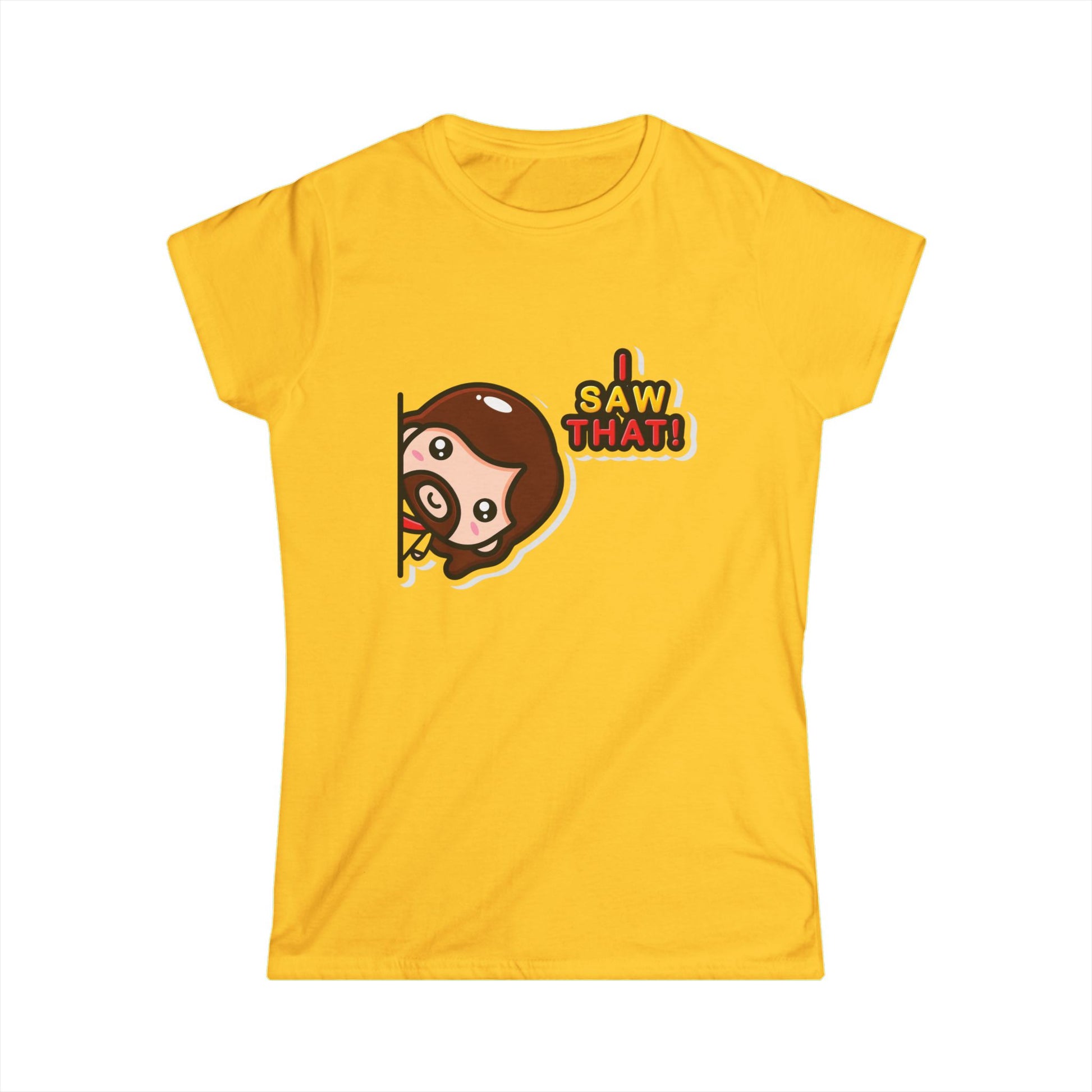 Funny Women's Softstyle Tee – "I Saw That!" Cartoon Design
