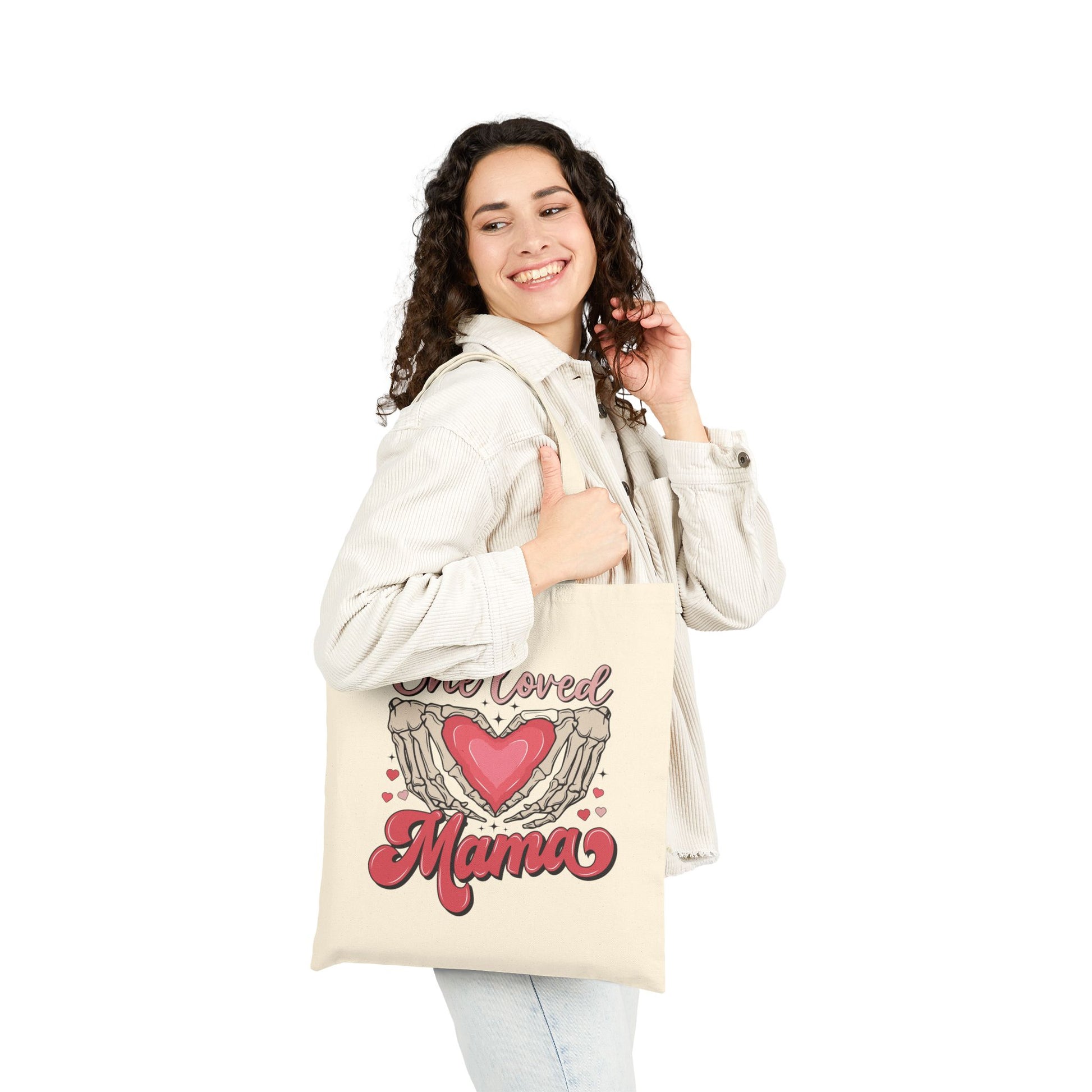 One Loved Mama Cotton Canvas Tote Bag - Heart Design, Perfect Gift for Moms