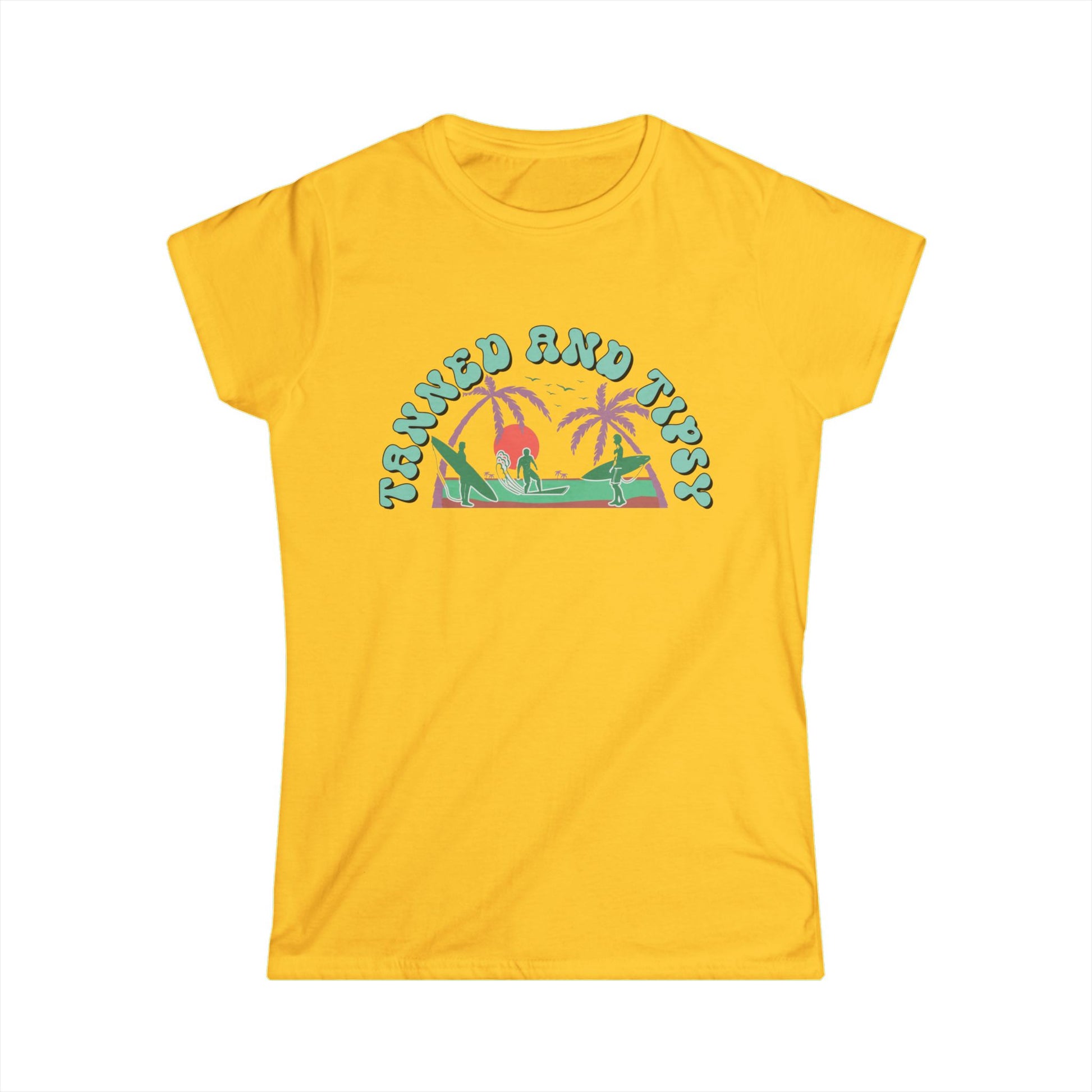 Tropical Vibes Tee - "Tanned and Tipsy" Women's Softstyle Shirt, Summer Casual Wear, Vacation Essentials, Gift for Her, Beach Day Top