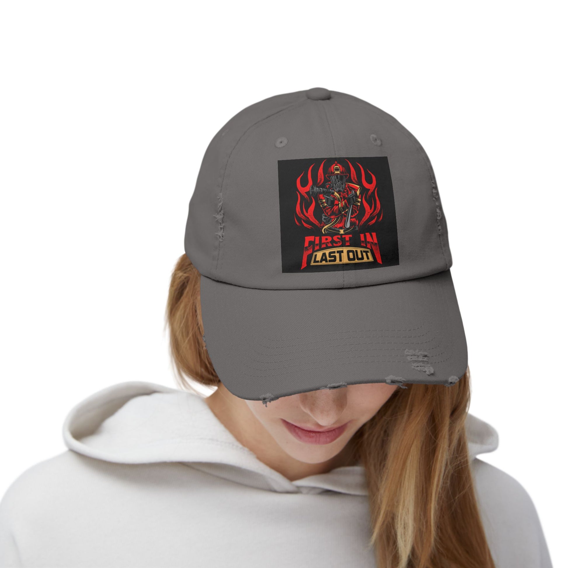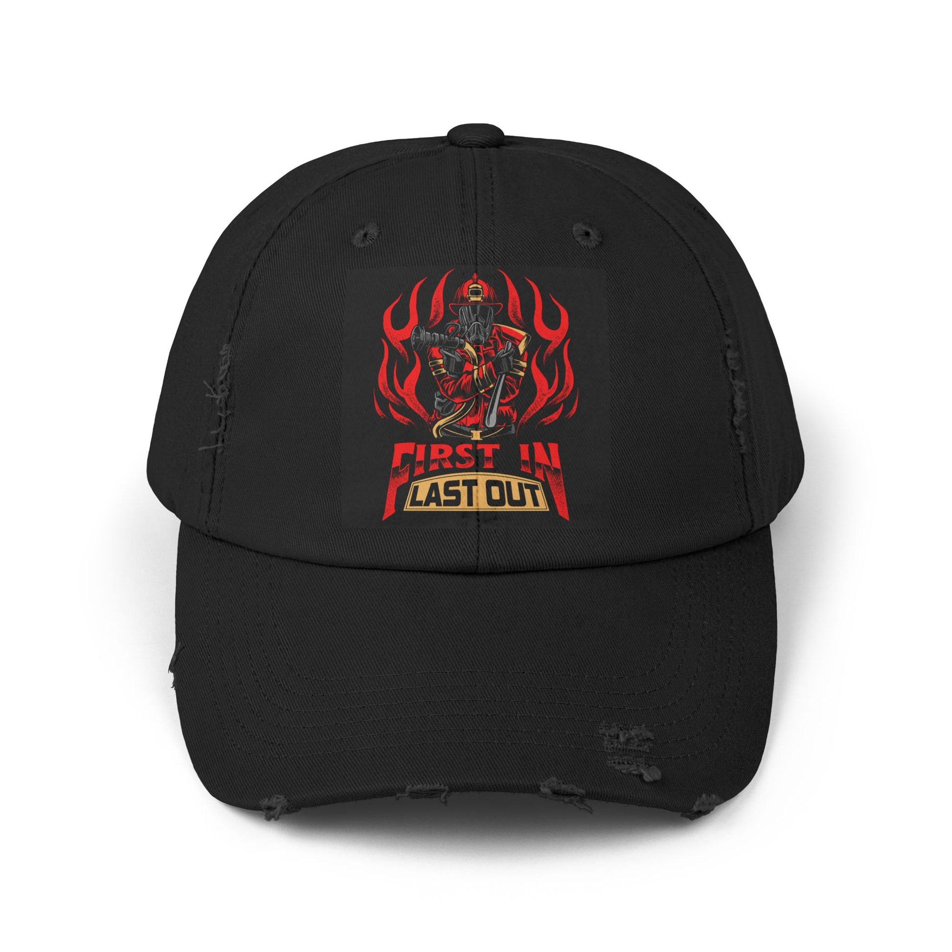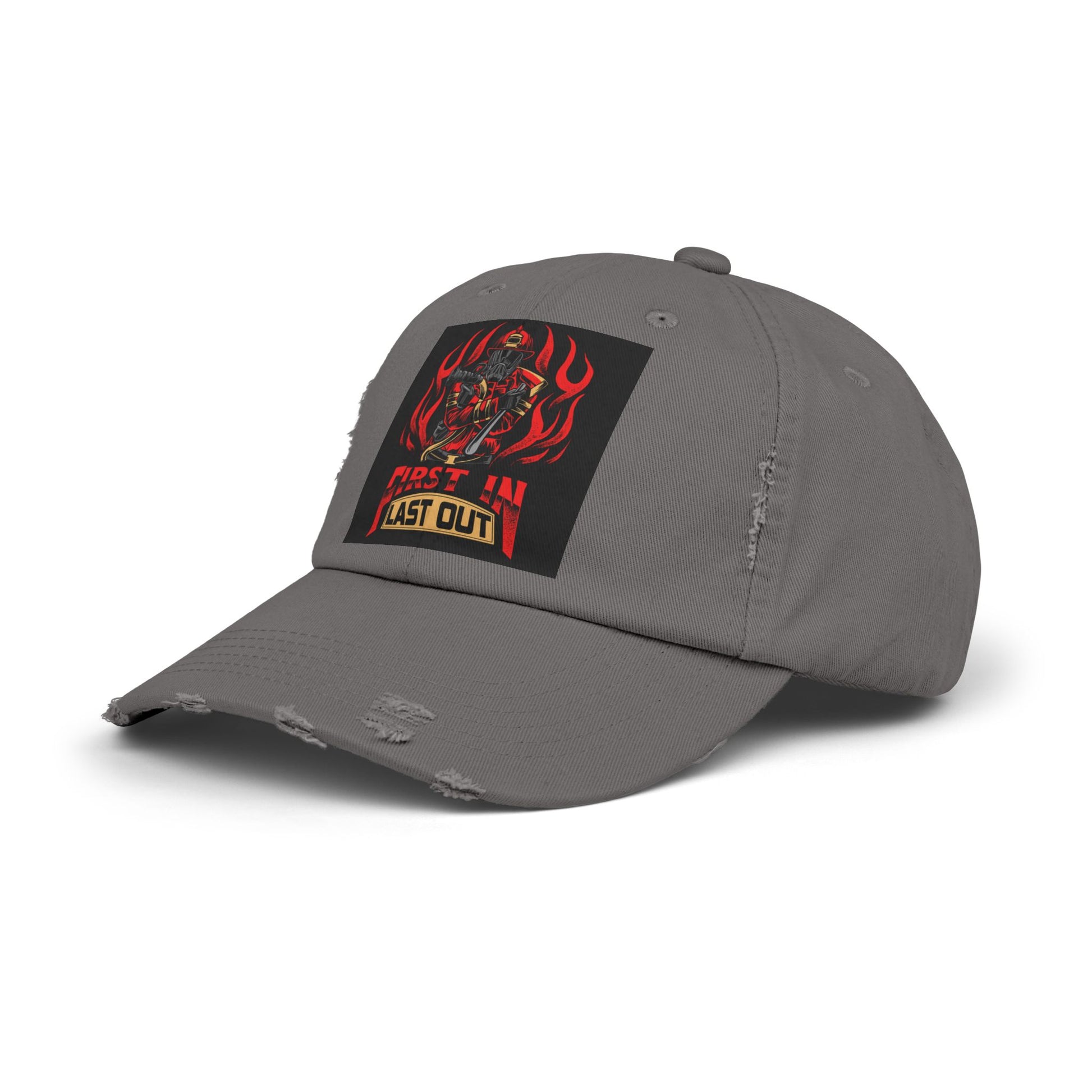 Unisex Distressed Cap - 'First In, Last Out' Vintage Style